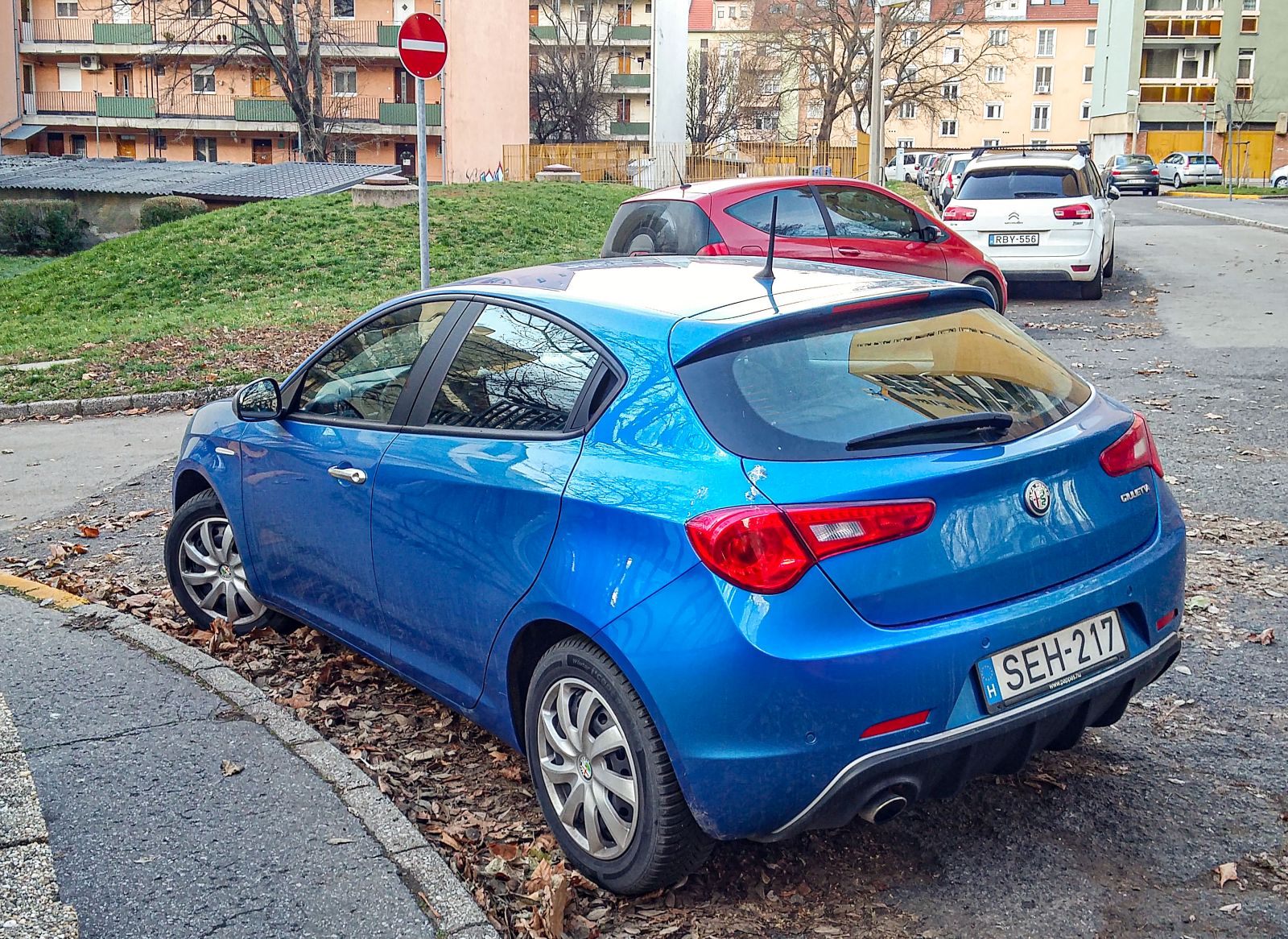 Rückansicht: Alfa-Romeo Giulietta in Misano Blue. Foto: Dezember, 2021.