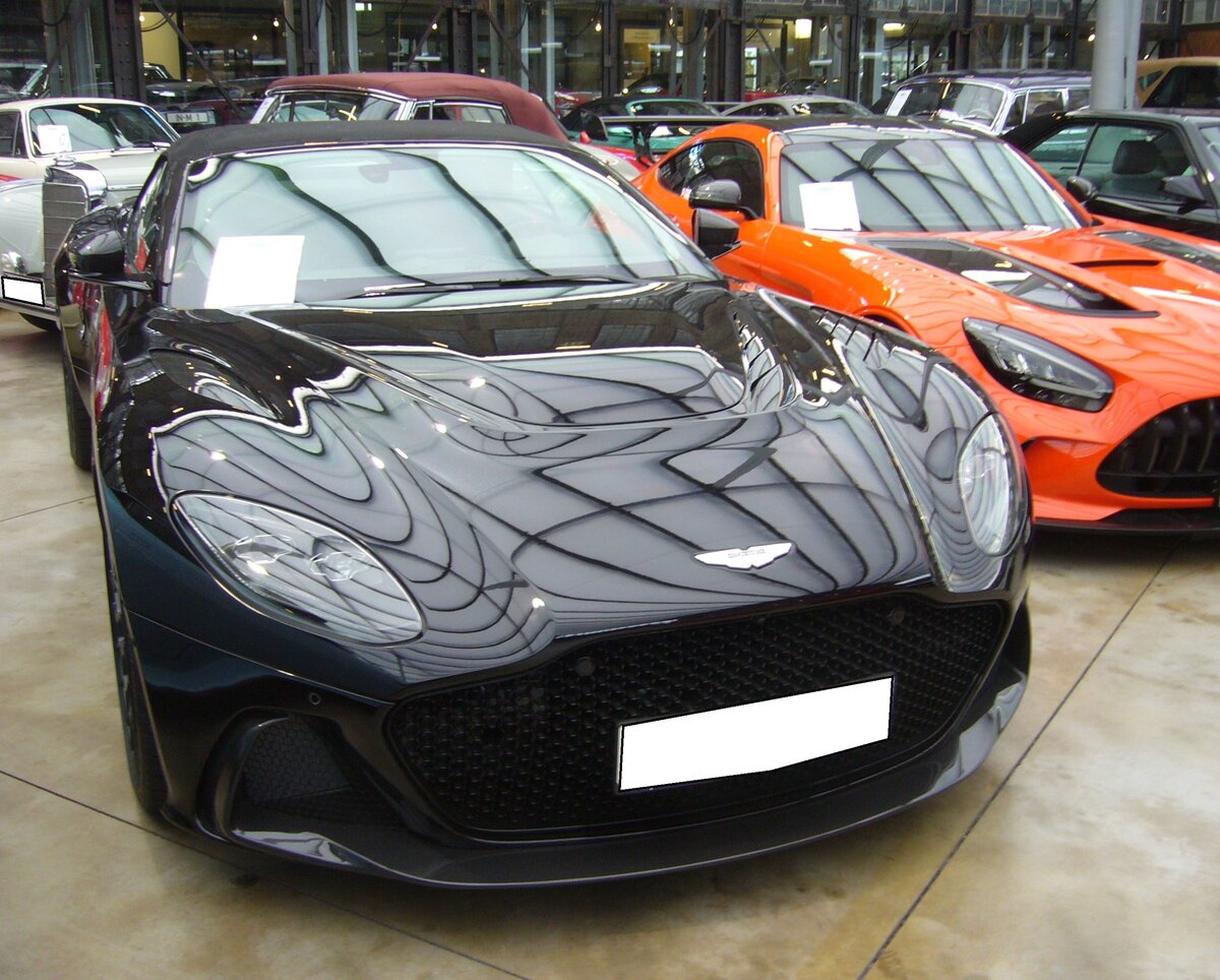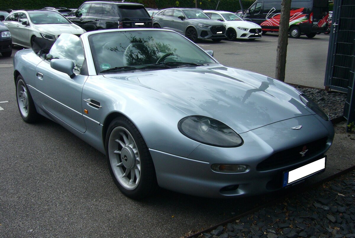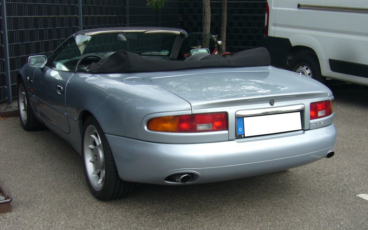 Heckansicht eines Aston Martin DB7 Volante. Besucherparkplatz der Classic Remise Düsseldorf am 20.09.2023.