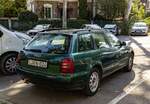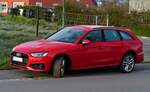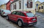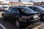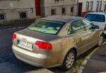 Hier ist ein Roter Audi A4 B5 Stufenheck von hinten zu sehen. Die Aufnahme stammt von Dezember, 2023.