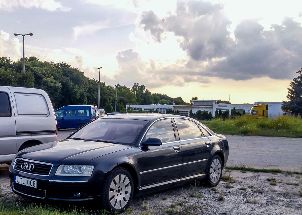 Audi A8, aufgenommen in Pécs (HU), Juli, 2019.