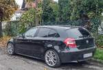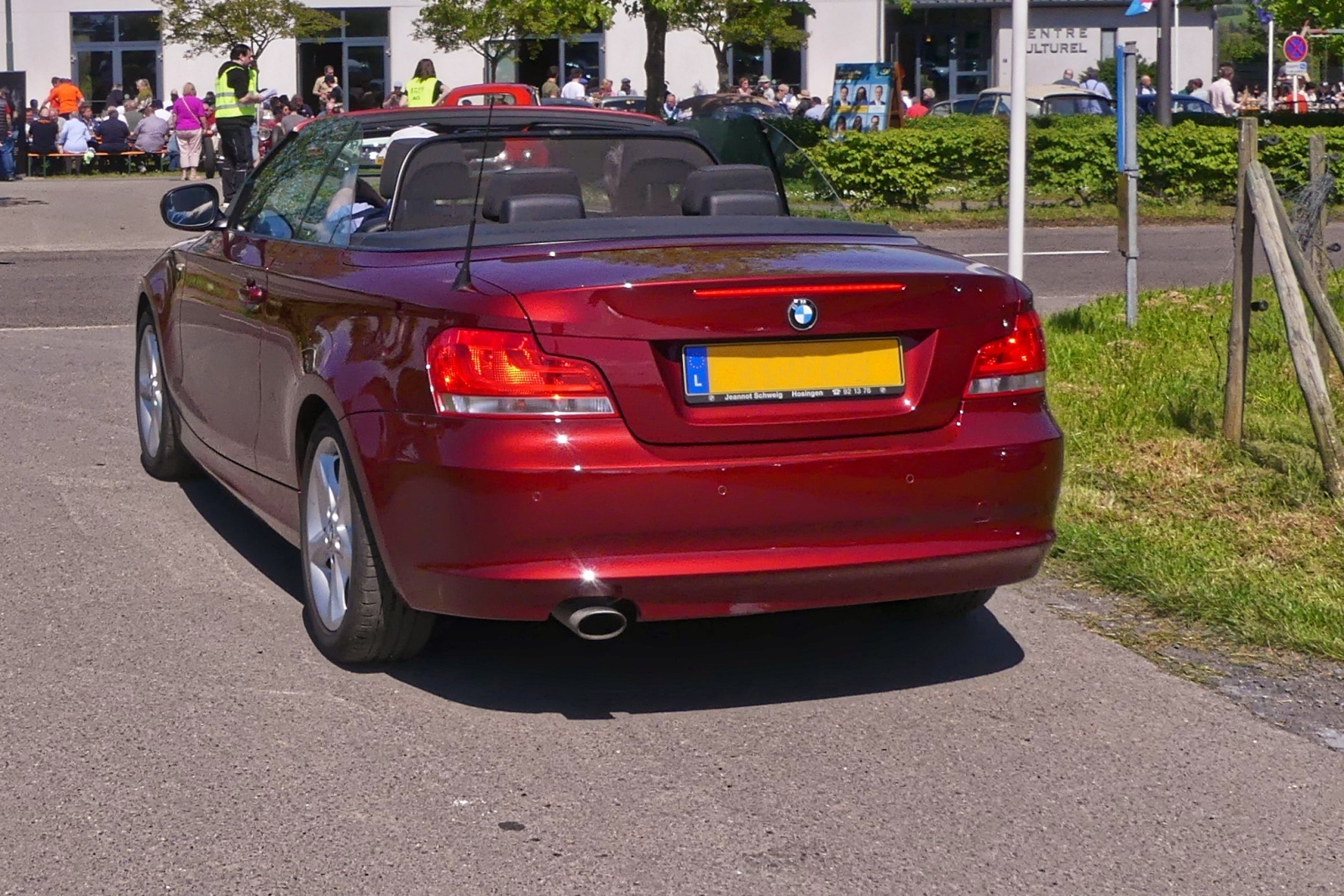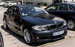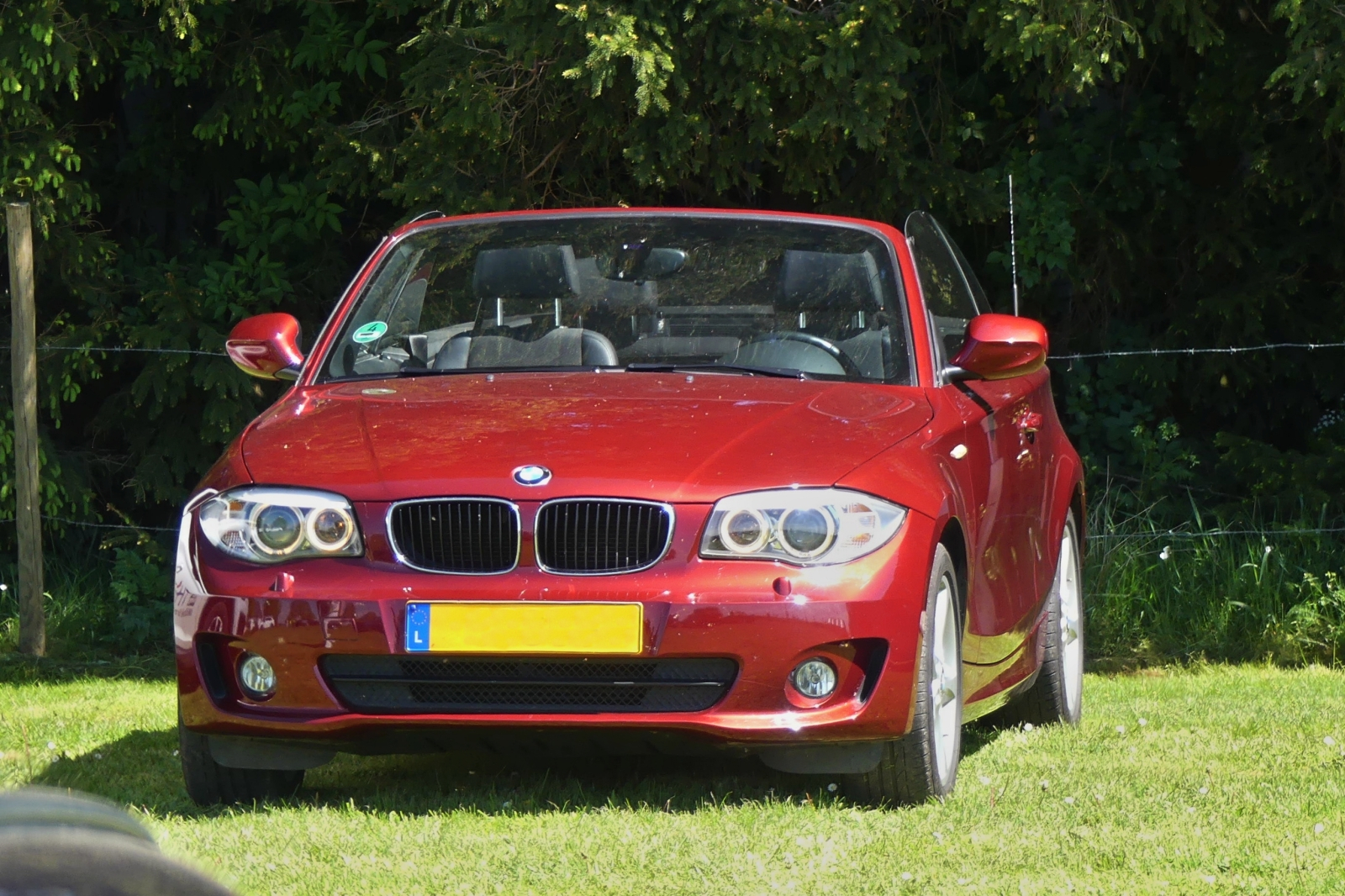BMW 1er Cabrio, abgestellt auf einer Weide, während einer Veranstaltung. 05.2024