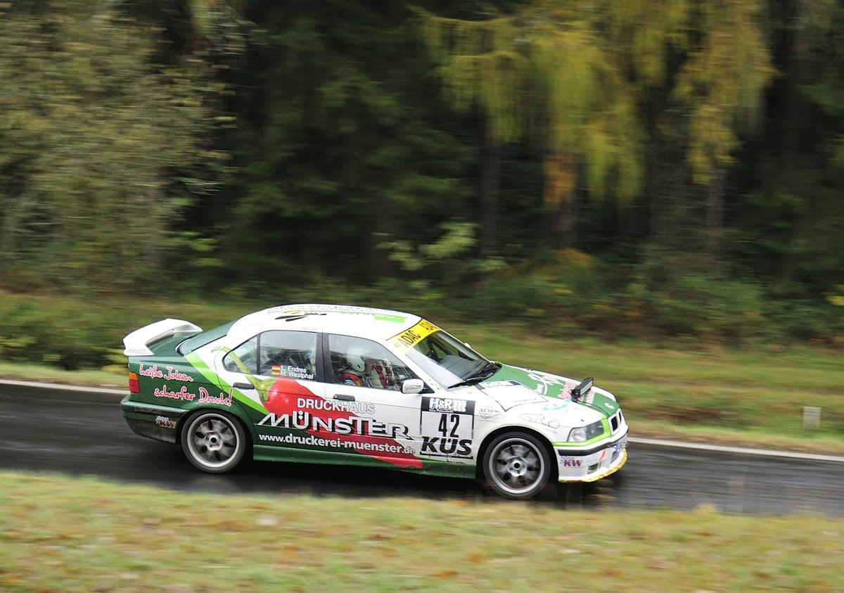 Nr.42 BMW E36, Marcus Westphal & Dominik Schäfer, auf teils noch glaten Asphalt, Youngtimer Rally Köln - Ahrweiler 12.11.2016, Morgens -2° auf teils noch glaten Asphalt