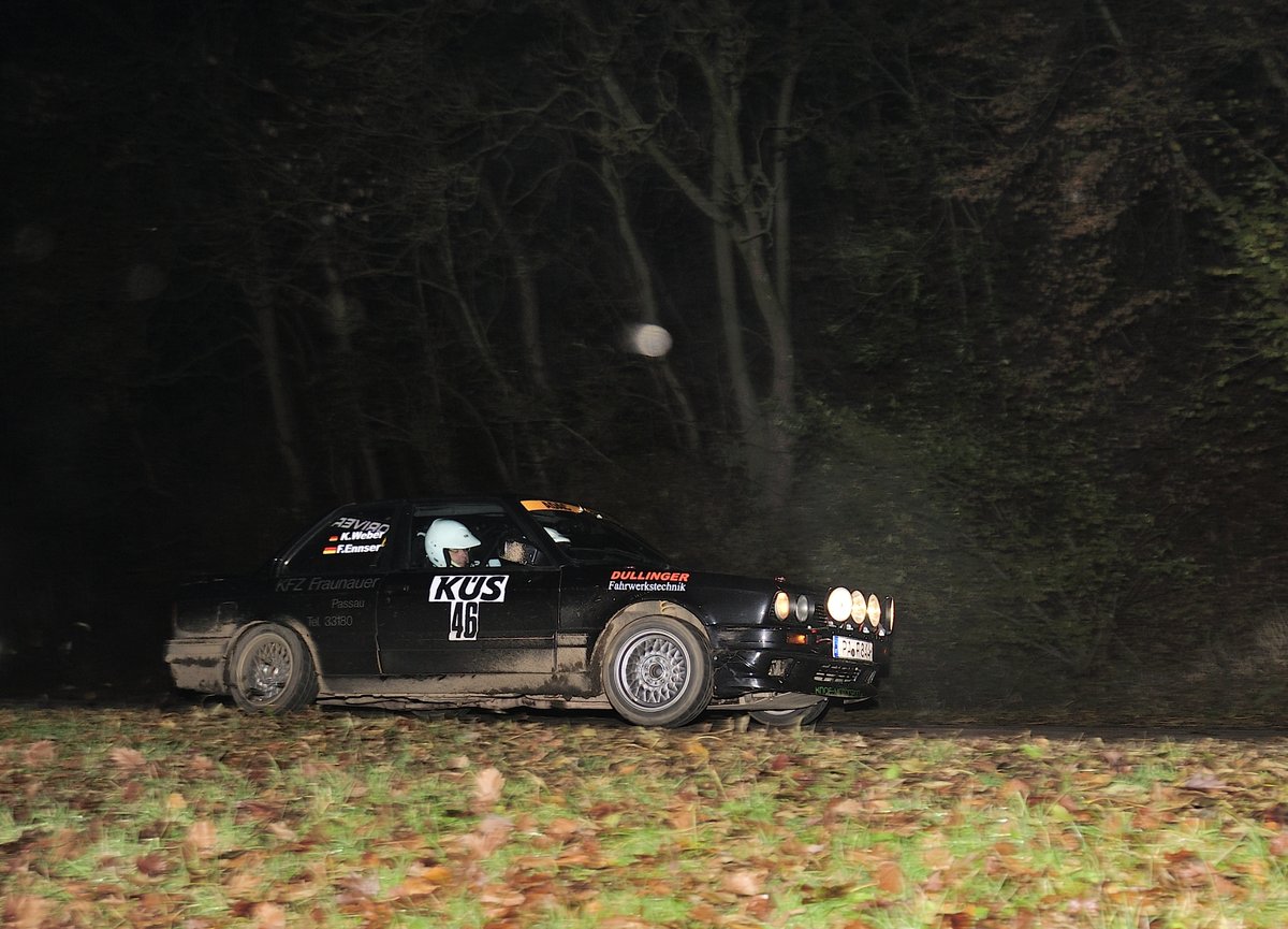 BMW 320is mit der Nr.46, Fabian Ennser & Klaus Weber bei der "Youngtimer" 39. ADAC Rallye Köln Ahrweiler 12.11.2016, Nachts in der Eifel, (Blitzlicht ist erlaubt)
