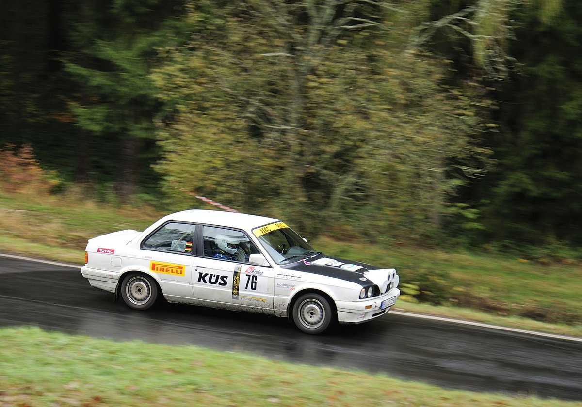 Nr.76, BMW 325i Michael Stams & Thomas Oelker bei der "Youngtimer" 39. ADAC Rallye Köln Ahrweiler 12.11.2016, Morgens -2° auf teils noch glaten Asphalt