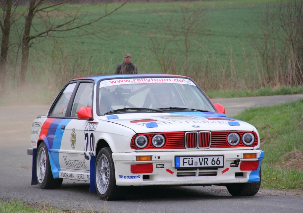 BMW 325 E30 WP1 der Rally Sonnefeld (AMC Hohe Aßlitz) am 20.04.2013. (Remo Behn/ Jana Walter/ 20)