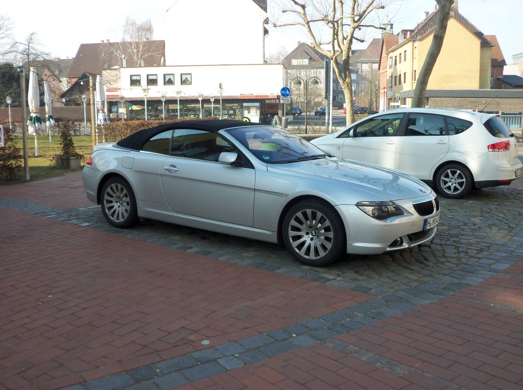 BMW E64 645Ci Cabriolet im Farbton titan silber aus dem Jahr 2004. Vorgestellt wurde die neue 6´er Serie auf der Fankfurter IAA im Jahr 2003. Im August 2003 begann die Produktion der wiederbelebten 6`er-Reihe als Coupe E63. Ab April 2004 bot BMW erstmals offiziell ein 6´er-Cabriolet mit der internen Bezeichnung E64 an. Der hier gezeigte 645Ci war von August 2003 bis Juni 2005 im Verkaufsprogramm. Danach wurde er durch den 650Ci abgelöst. Der V8-Motor des 645Ci hat einen Hubraum von 4398 cm³ und leistet 333 PS. Ein solches Cabriolet stand bei seinem Erscheinen mit einem Kaufpreis von mindestens € 72.000,00 in den Preislisten der BMW AG. Classic Remise Düsseldorf am 03.10.2025. Michael H.