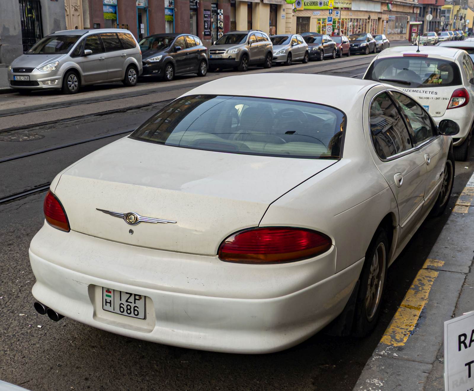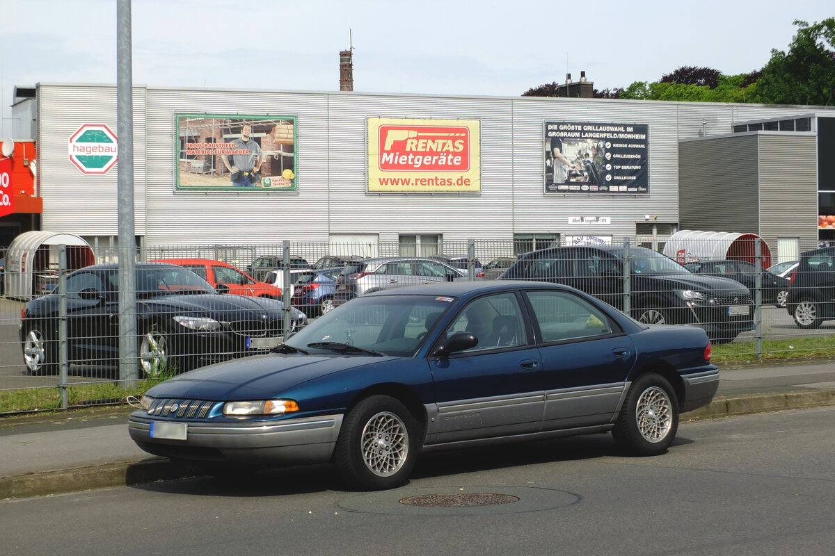 Ex Texas Trooper Polizeiauto im Originalzustand. Chrysler Vision, Baujahr 1994, 3,5liter Hubraum, 155KW, Tüv und AU neu, 3999 Euro. Ob die braune Original Lederjacke mit Sheriffstern auf dem Beifahrersitz im Preis inbegriffen ist weiß ich nicht. Fotografiert am 23.09.2011 bei einem Gebrauchtwagenhändler in Aachen (vom Bürgersteig!)