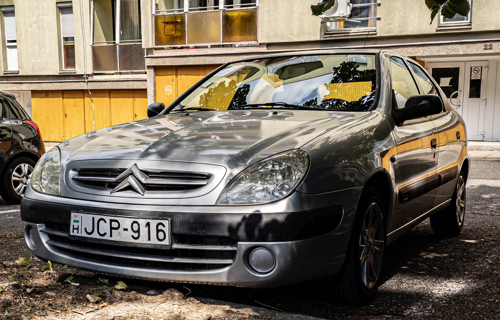 Rückansicht: Citroen Xsara in einer eleganten dunkelgrünen Lackierung. Foto: Januar 2023.
