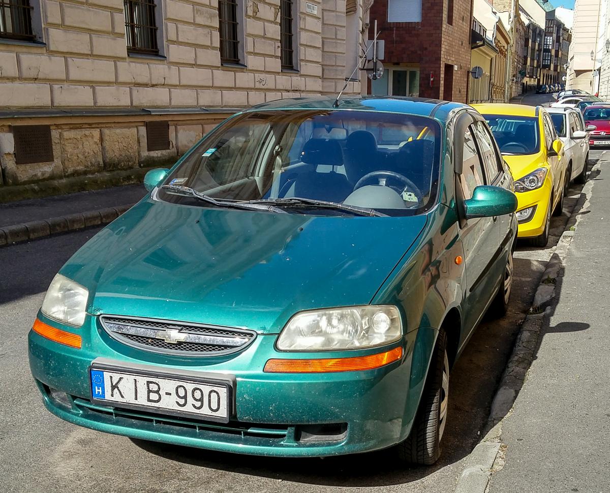 Grüner Chevrolet kalos, gesehen in Juli, 2020.