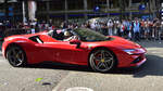 Heckansicht eines Ferrari Roma in der Sonderfarbe BP green. Classic Remise Düsseldorf am 20.09.2023.