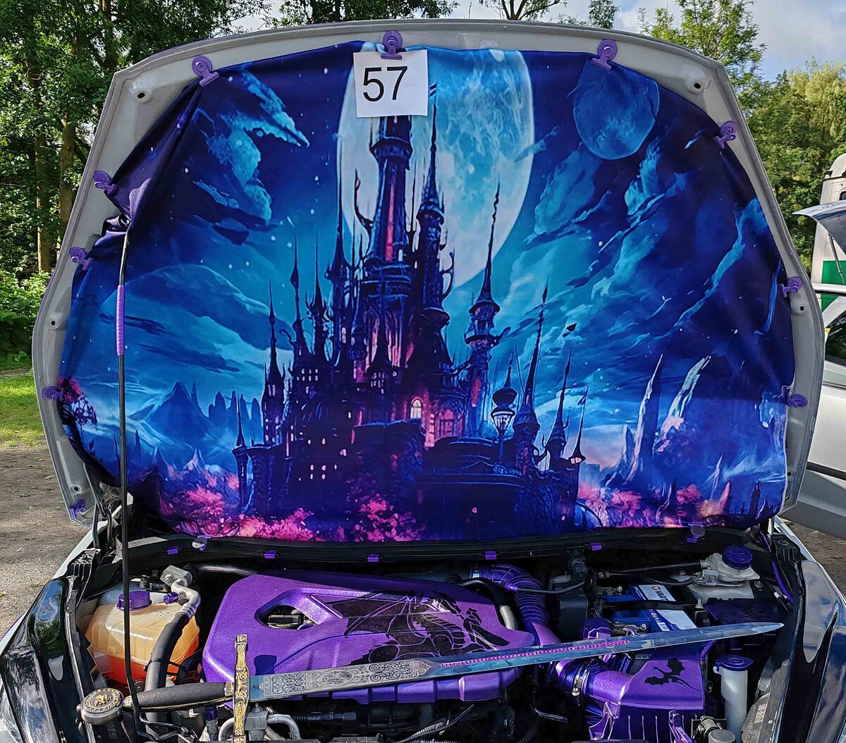 =Motorhaube des Ford Fiesta ST, gesehen beim Automobiltreffen "TIEF AM TEICH" auf dem Hünfelder Festplatz im August 2024