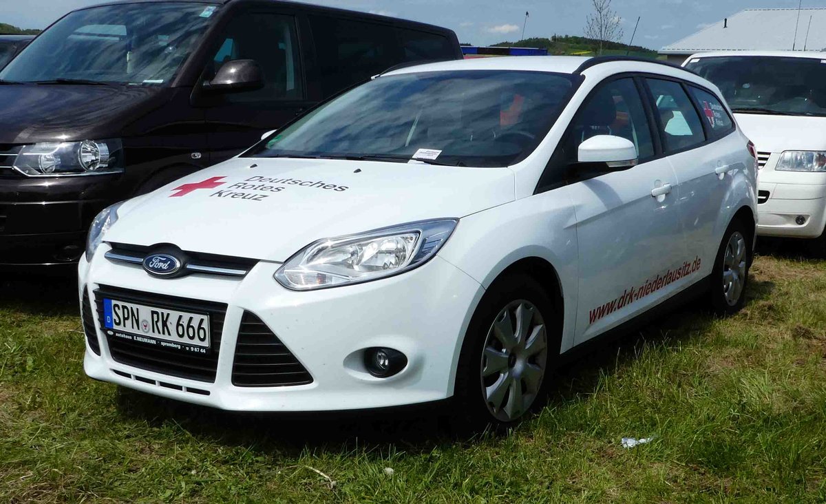 =Ford Focus 3. Generation vom DRK Niederlausitz abgestellt auf dem Parkplatz der RettMobil 2017 in Fulda, Mai 2017