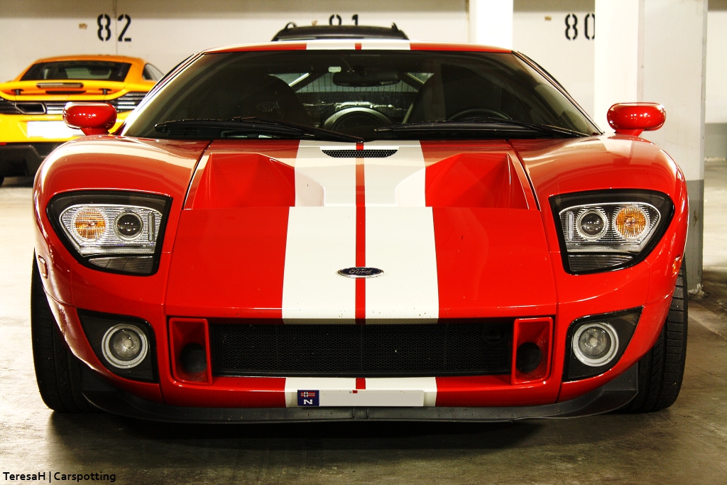 Ford GT, gebaut von 2004 bis 2006 als Retro-Car des legendären Ford GT40 der Jahre von 1964 bis 1968. Insgesamt verließen 4.038 Sportwagen dieses Typs das Ford-Werk Wixom im US-Bundesstaat Michigan. Der als Mittelmotor verbaute V8-Motor hat einen Hubraum von 5409 cm³ und leistet 550 PS. Die Höchstgeschwindigkeit gab Ford mit 330 km/h bei einem Verbrauch von 17 Litern auf 100 Kilometer an. Der gezeigte Ford GT wurde im Jahr 2005 produziert. Essen Motor Show am 28.11.2025. Michael H.