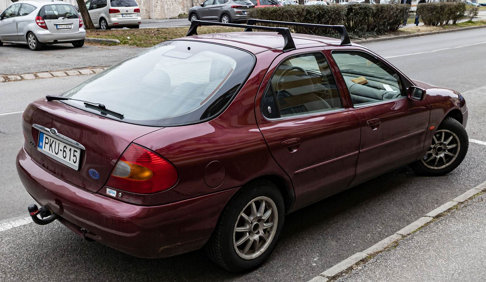 Rückanischt: roter Ford Mondeo Mk1 Facelift Liftback. Foto: 03.2022.