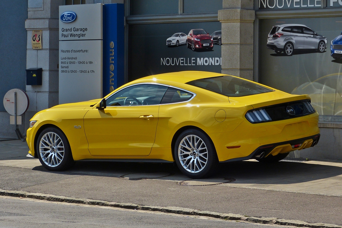 . Seitenansicht eines neuen Ford Mustang 5.0 GT. 22.08.2015