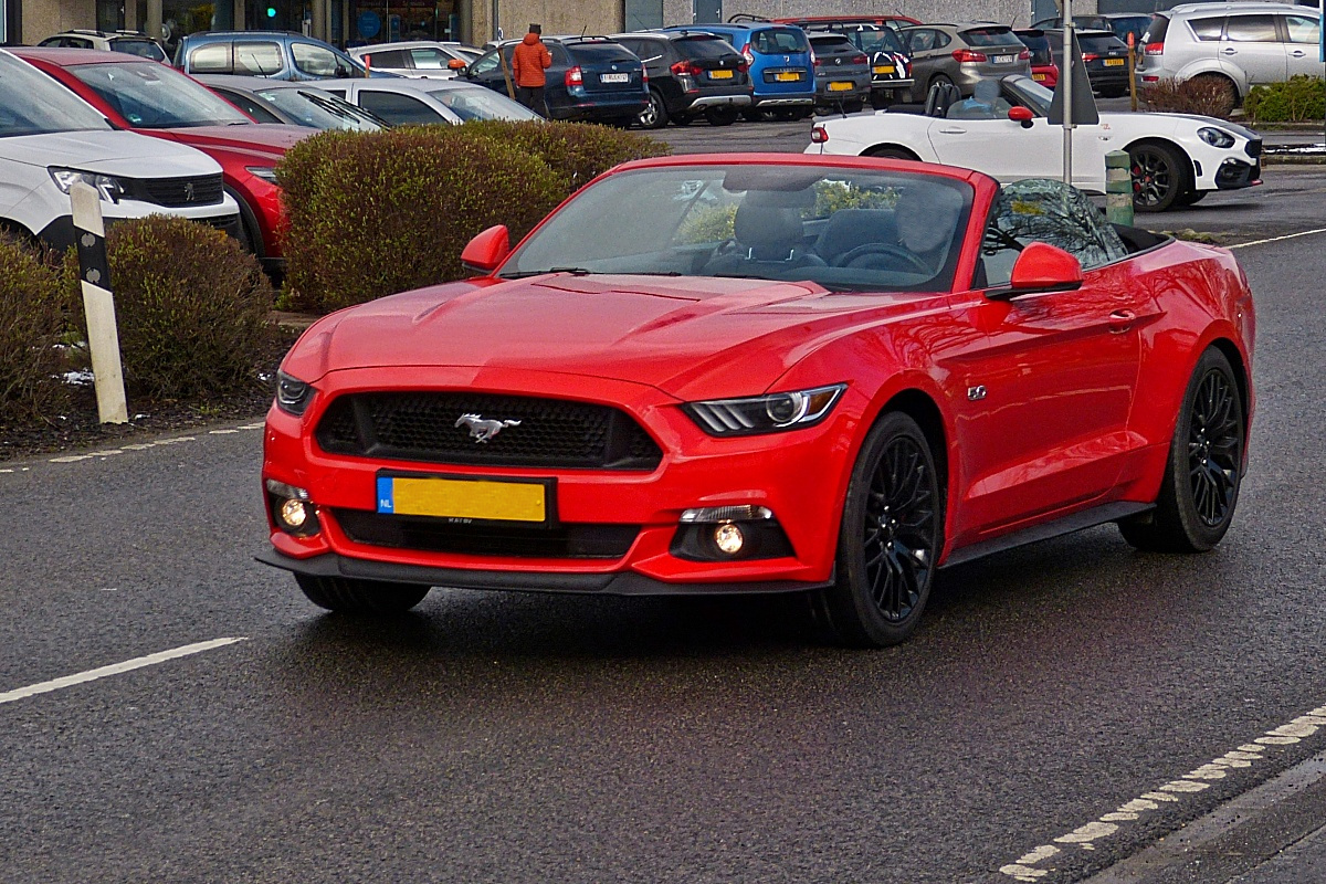 Am frühen kühlen morgen startet dieser Ford Mustang Cabrio Open Air zu einer Rundfahrt. 04.2022