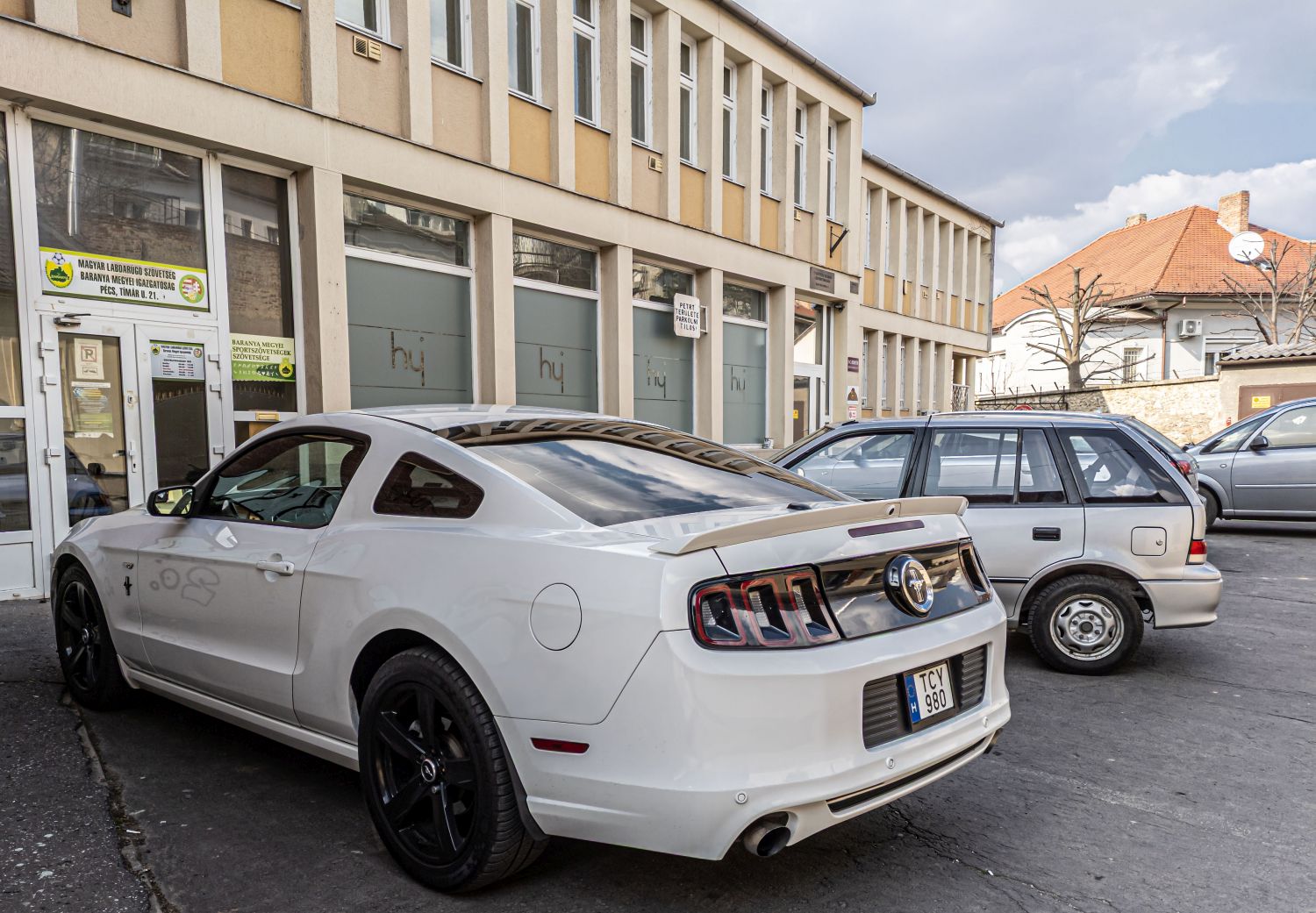 Rückansicht / Seitenansicht: Ford Mustang fünfte Generation (zweite Facelift). Foto: 03.2022.