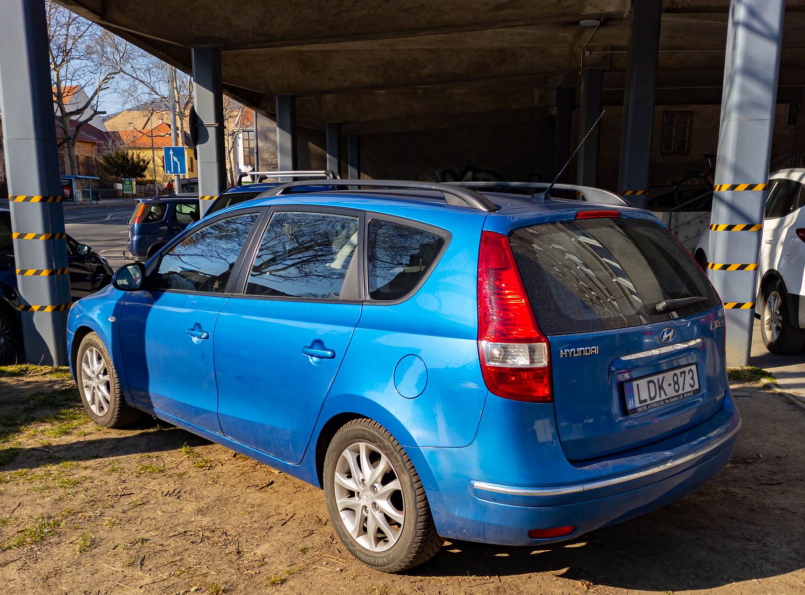 Rückansicht: "Vivid blue" Hyundai i30CW, der ersten Generation. Foto: März, 2023.