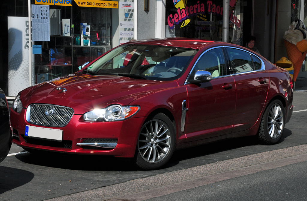 Jaguar XF, gesehen am Straßenrand. 05.2025