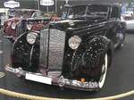 Lamborghini Espada, gebaut in den Jahren von 1968 bis 1978. Im Laufe seiner zehnjährigen Produktionszeit wurden 1.225 Autos vom Typ Lamborghini Espada in drei Serien produziert. Der abgelichtete Espada, lackiert im Farbton argento, wurde 1971 produziert und gehört somit zur zweiten Serie. Der V12-Motor hat einen Hubraum von 3929 cm³ und leistet 325 PS. Techno Classica Essen am 10.04.2025.