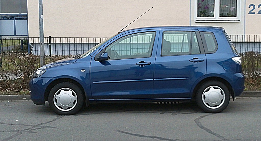 Hier ist ein Mazda 2 Mk2 in der Farbe Aurora Blue zu sehen. Foto: 10.2025.