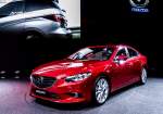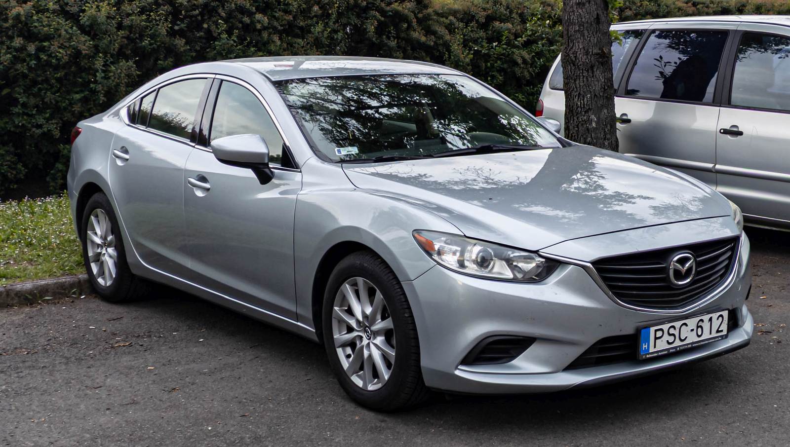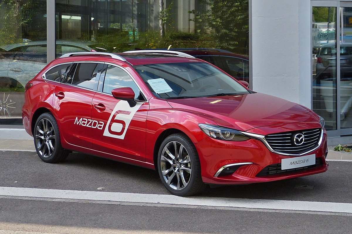 . Mazda 6 abgestellt auf dem bürgersteig vor einer Vertretung. 25.08.2015