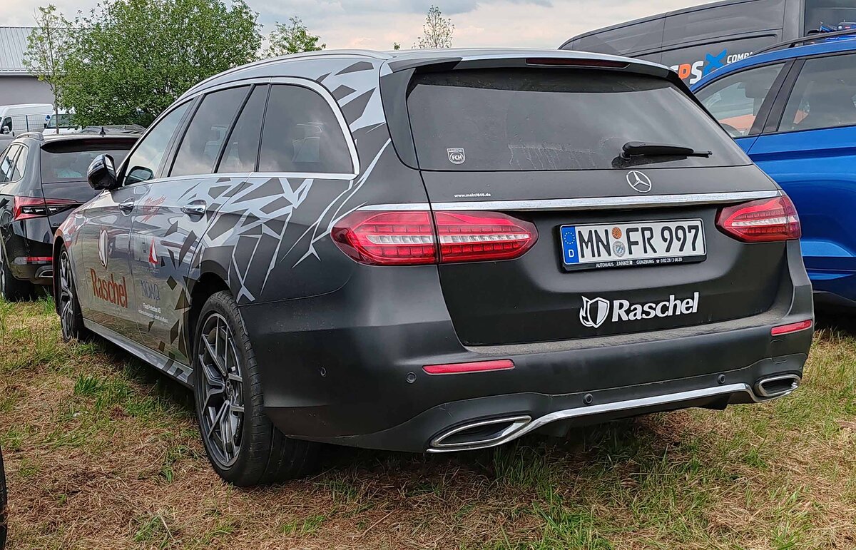 =MB E-Klasse der Firma RASCHEL, gesehen auf dem Parkplatzgelände der RettMobil 2024 in Fulda