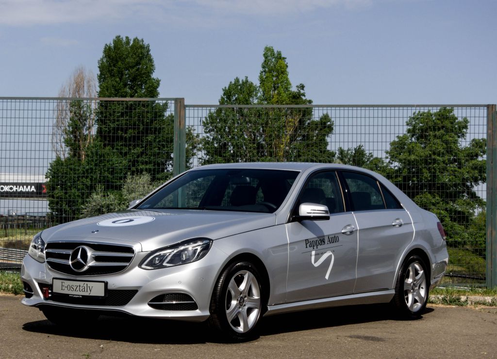 Mercedes-Benz E-Klasse (Modelljahr ab 2013)parkiert auf dem Hungaroring zwischen zwei VIP-Fahrten am 05.05.2013