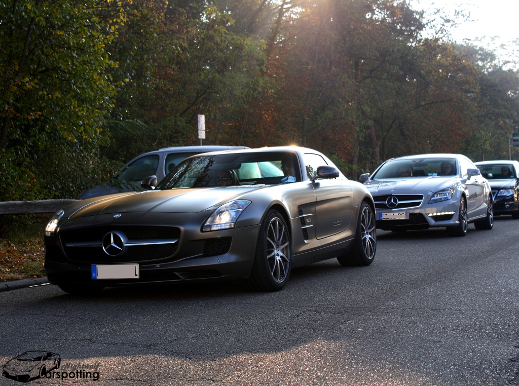 Mercedes SLS AMG und grauer CLS63 AMG in Hockenheim am 23.10.2011