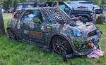 Mini Coupe. Baujahre von 2011 bis 2015. Drei Benzin Motore und ein Diesel Motor wurden verbaut. Spitzenmodell war der Mini JCW (John Cooper Works) mit 1598ccm und 211 PS (155kW). Vmax. 240km/h. Foto: im Dezember 2021