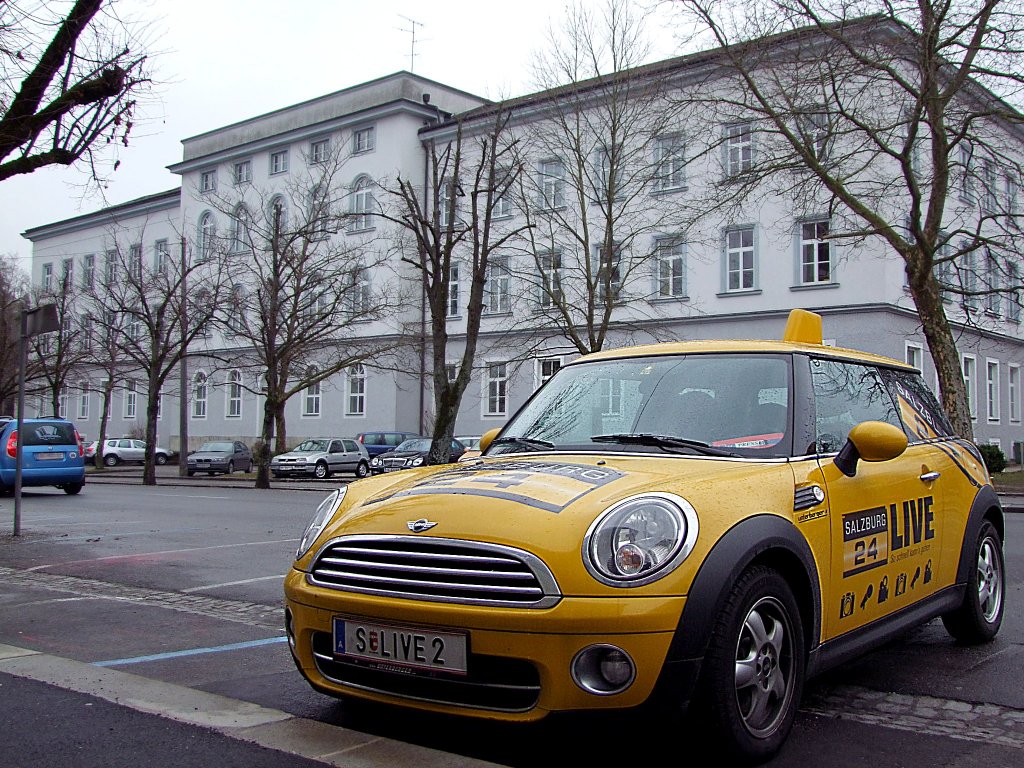 MINI aus Salzburg vor dem alten Gymnasium in Ried;110219