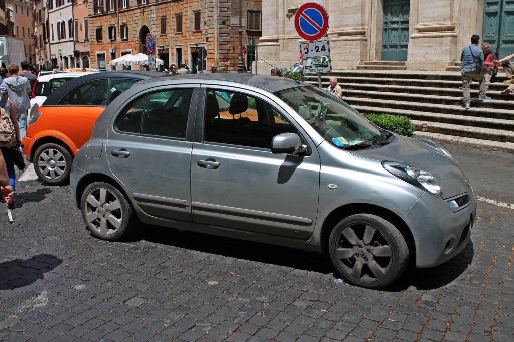 Nissan Micra in Silber am 17.05.2013 in Rom.