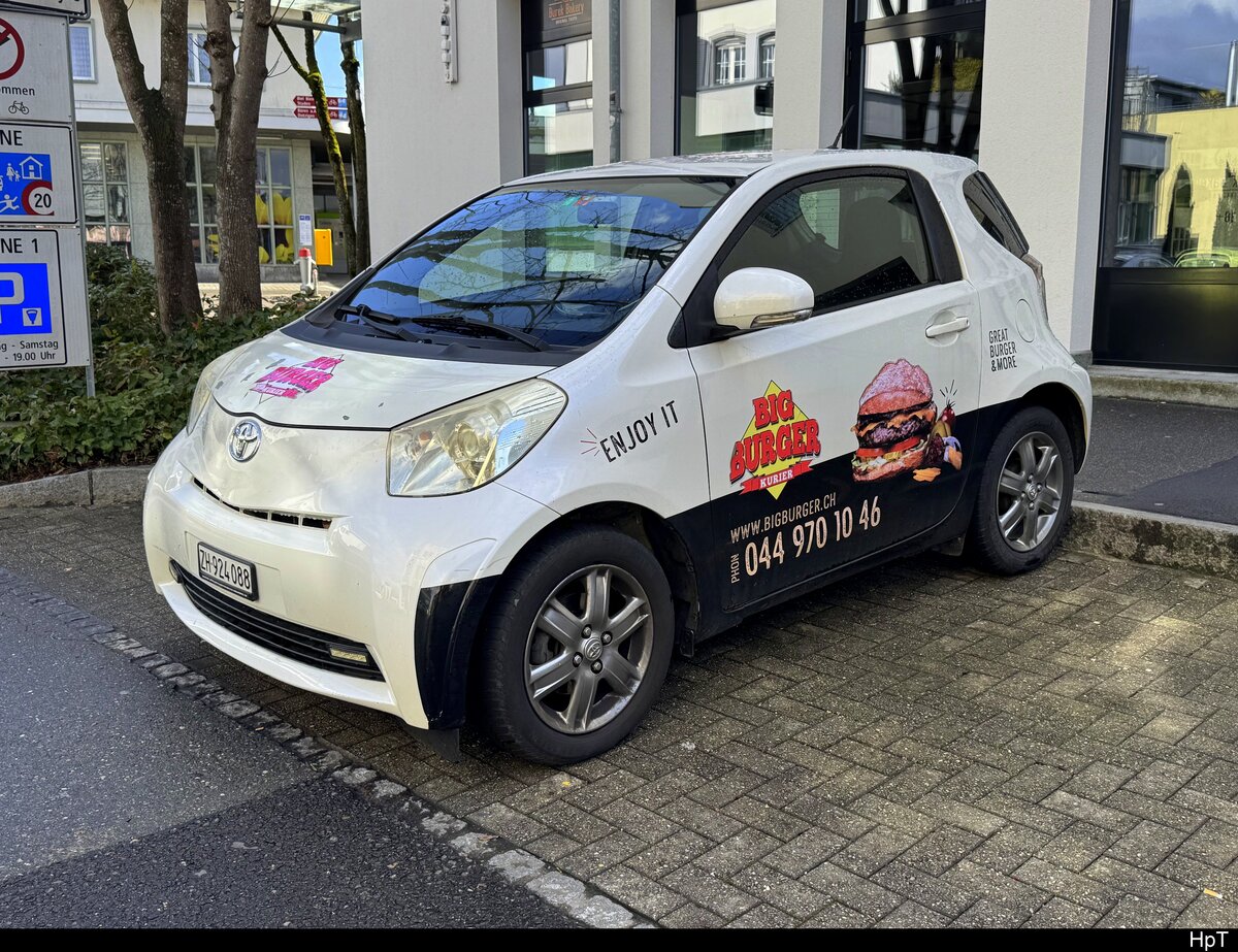 Nissan Micra mit Werbung abgestellt in Lyss am 13.03.2025