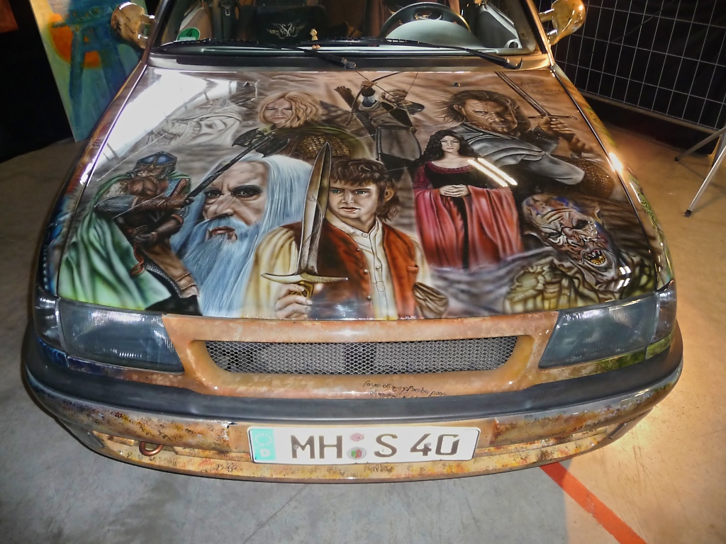 Opel Astra Cabriolet mit "Herr der Ringe" Airbrush, US-Car-Show Grefrath 2011-08-21