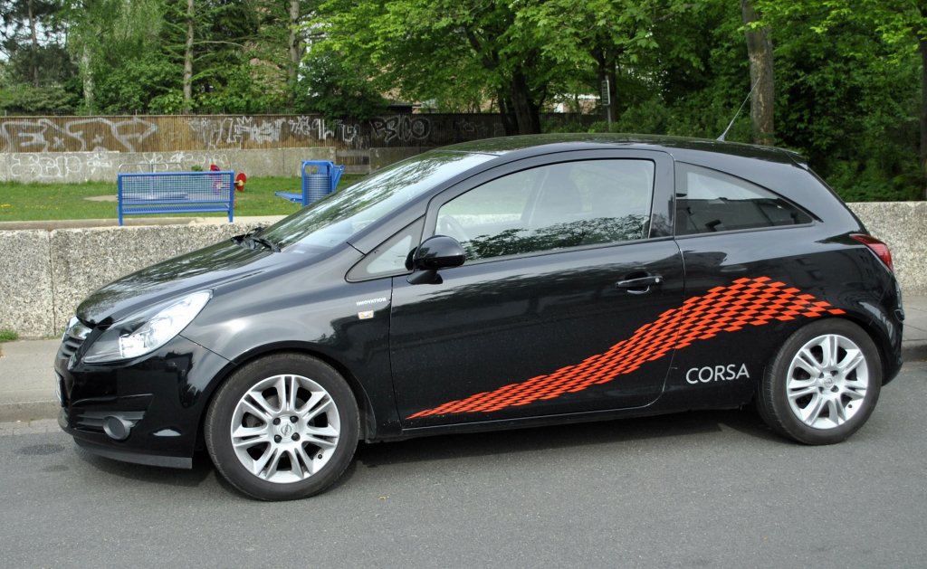 Opel Corsa, gesehen am Straßenrand. 06.2025