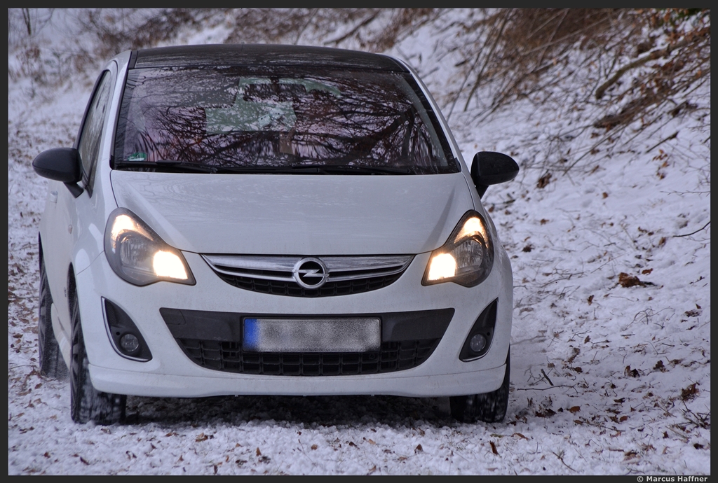 Ein nagelneuer Opel Corsa Color Edition OPC Line in der Farbe Weiß, fotografiert am 11. Februar 2013 im Altmühltal.