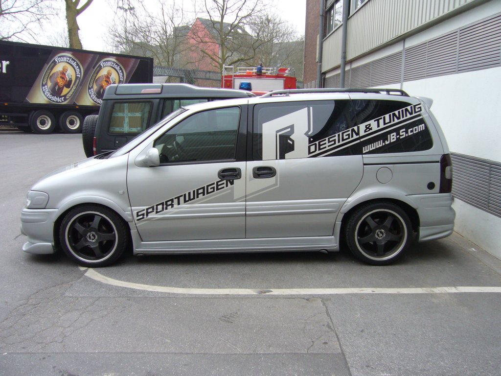 Ein optisch "aufgebrezelter" Opel Sintra steht auf dem Ausstellerparkplatz der Messe Essen. Der Sintra basierte auf dem Chevrolet Venture und wurde im GM-Werk Doraville/Georgia gebaut. In den Jahren 1996 - 1999 wurde er über das Opel-Händlernetz in Europa als Opel Sintra verkauft. Aufgrund von schlechten Crashtestergebnissen in den USA verlief der Verkauf in Europa eher schleppend. Der Sintra wurde vom Zafira A abgelöst. Michael H.