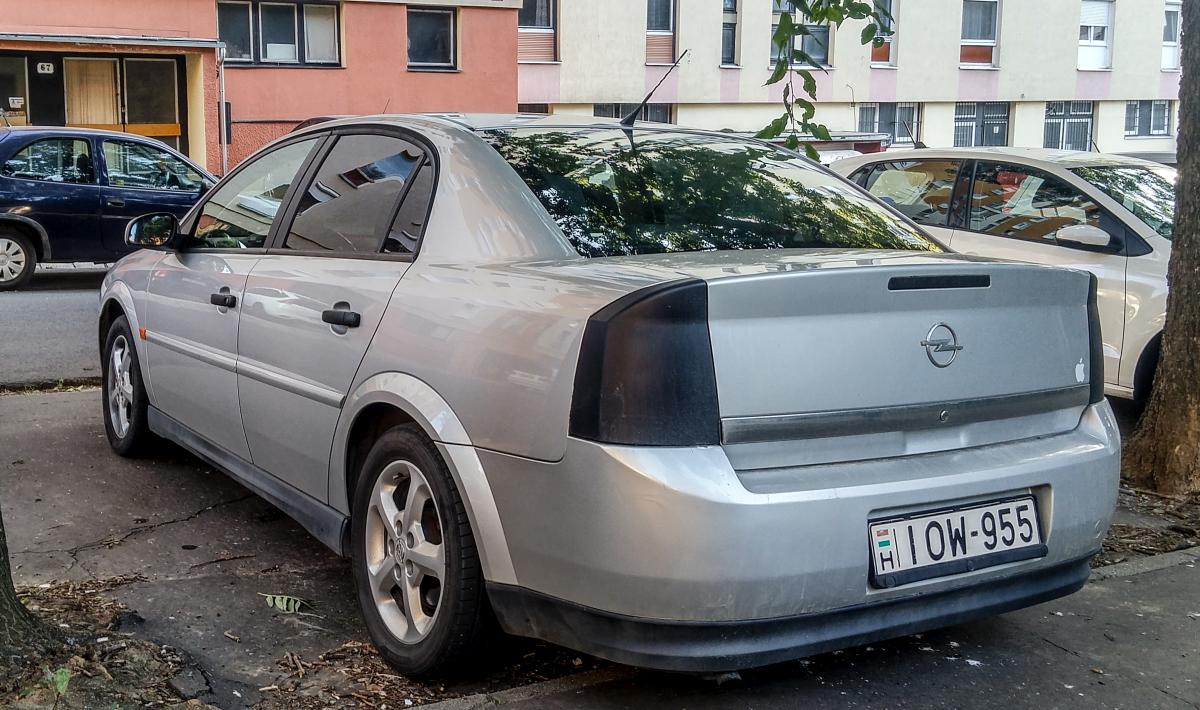 Opel Vectra mit "Tuning Rückleuchten", fotografiert in August 2019 (Pécs, Ungarn).