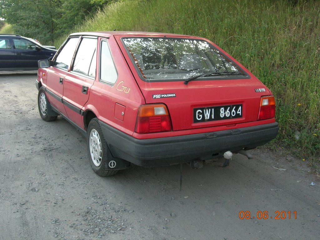 Gorzow Wielkopolski, 31.05.2011, Polonez 1500 LE Technische Daten: Hoehe: 1420mm; Breite: 1650mm; Laenge: 4322mm; Gewicht: 1130 kg. Motor: Vierzylinder-Viertakt, fluessigkeitgekuehlt; Huebraum: 1481 cm³; Leistung: 82PS bei 5200 U/min; Drehmoment:115 Nm bei 3200 U/min Hoechstgeschwindigkeit: 155 km/h; 0 auf 100 km/h 16,0s