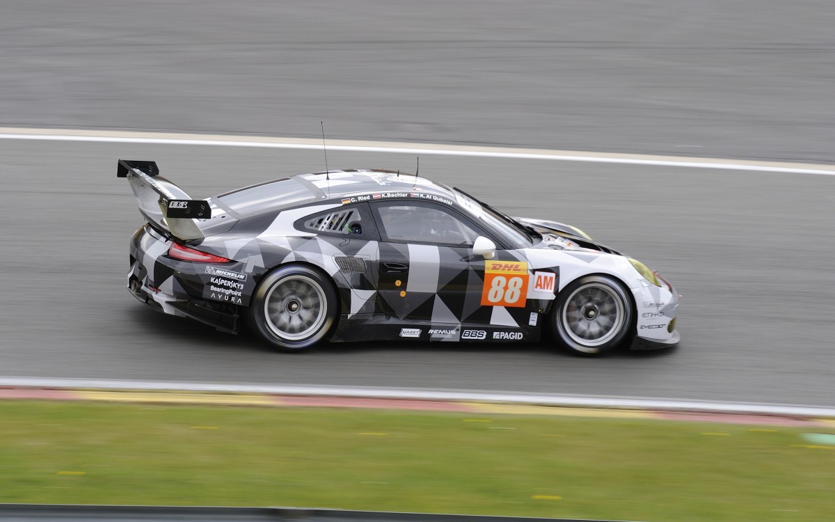 Mitzieher der Nr: 88 von Proton Racing, Porsche 911 RSR (Christian Ried, Klaus Bachler, Khaled al-Qubaisi) . Am 2.Mai 2015 in Spa Francorchamp beim WEC Langstrecken Rennen