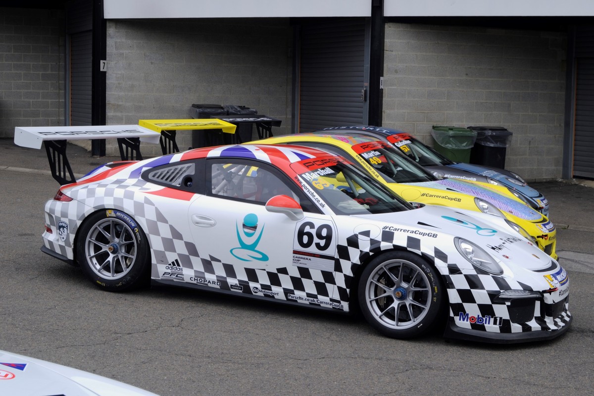Porsche 911 (Type 991) GT3 Cup Car im Fahrerlager, Porsche Carrera Cup Great Britain, Supportrace bei den FIA WEC 6h Spa Francorchamps 2.Mai 2015