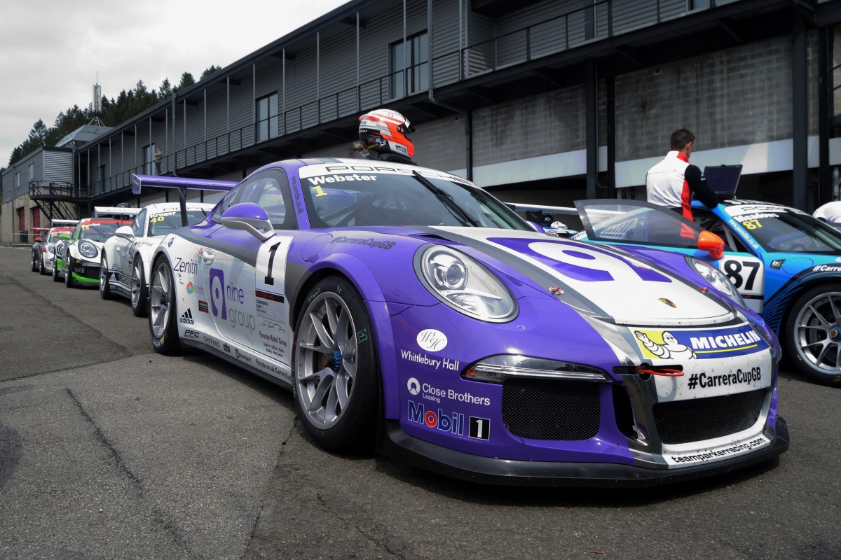 Porsche 911 (Type 991) GT3 Cup Car im Fahrerlager, Porsche Carrera Cup Great Britain, Supportrace bei den FIA WEC 6h Spa Francorchamps 2.Mai 2015