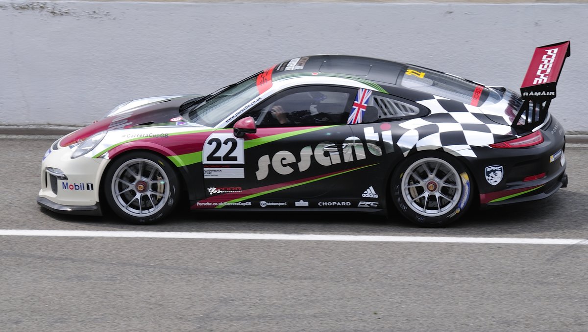 Porsche 911 GT3 Cup (Type 991), beim Rennen des Porsche Carrera Cup Great Britain, in Spa Francorchamps am 2 Mai 2015.