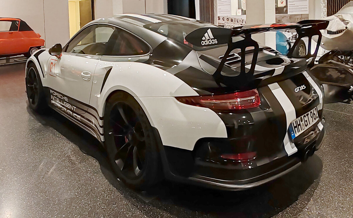 =Porsche GT 3 RS, ausgestellt im Museum PROTOTYP in Hamburg, 09-2024