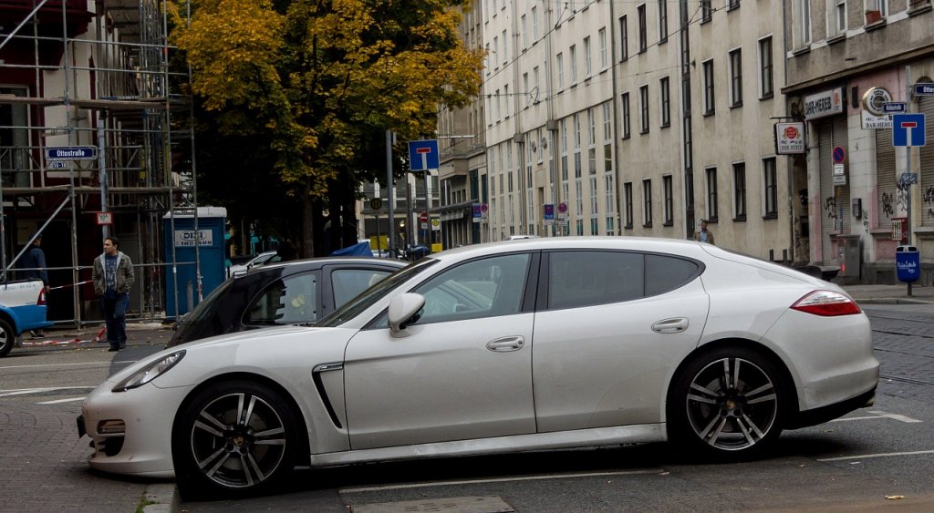 Knapp parkierender Porsche Panamera. (23.10.2012)