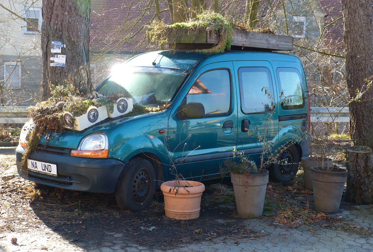 Ein Renault Kango erfüllt in Hersbruck beim Bahnhof rechts der Pegnitz nur noch Dekozwecke 17.02.2018
