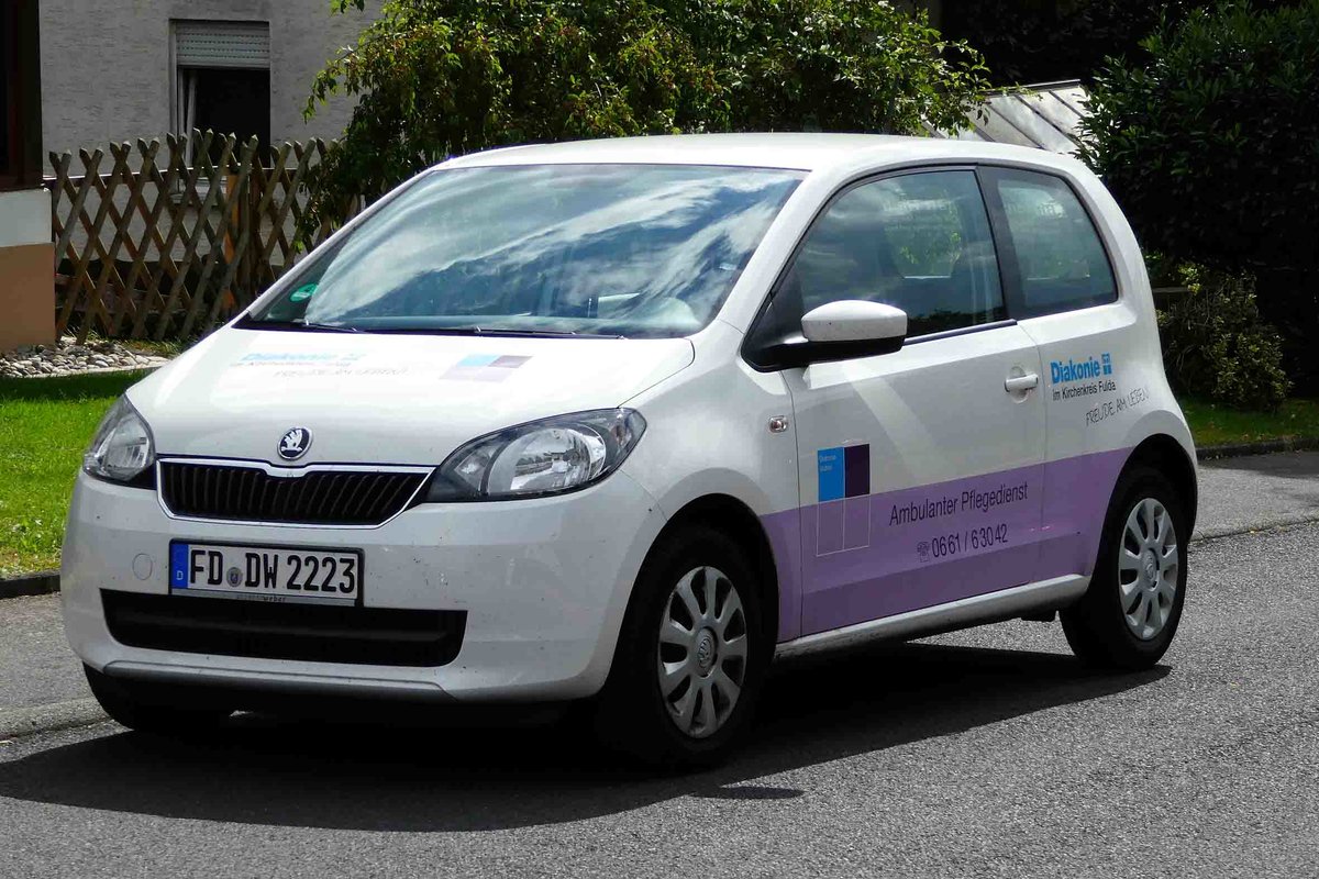 =Skoda Citigo der "Diakonie" steht im August 2016 in 36100 Petersberg-Marbach