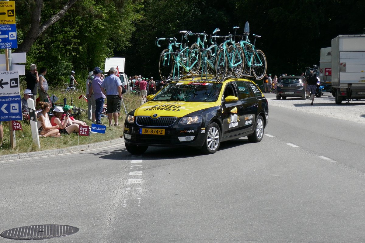 Škoda Begleitfahrzeug des Team Lotto Jumbo am 17.6.17 wärend des Tour de Suisse Rennens in Schaffhausen.
