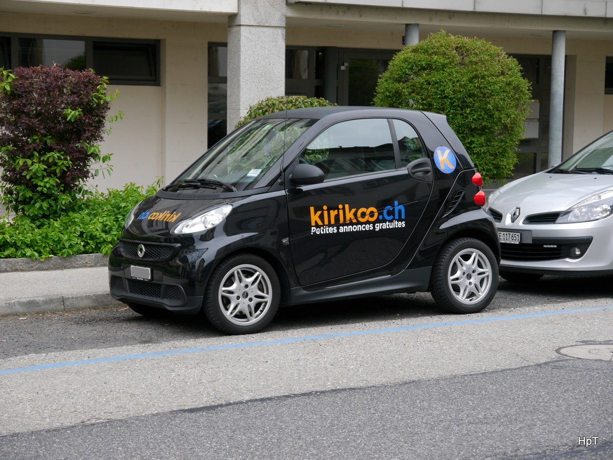 Grauer Smart mit Werbung in Yverdon am 21.05.2025