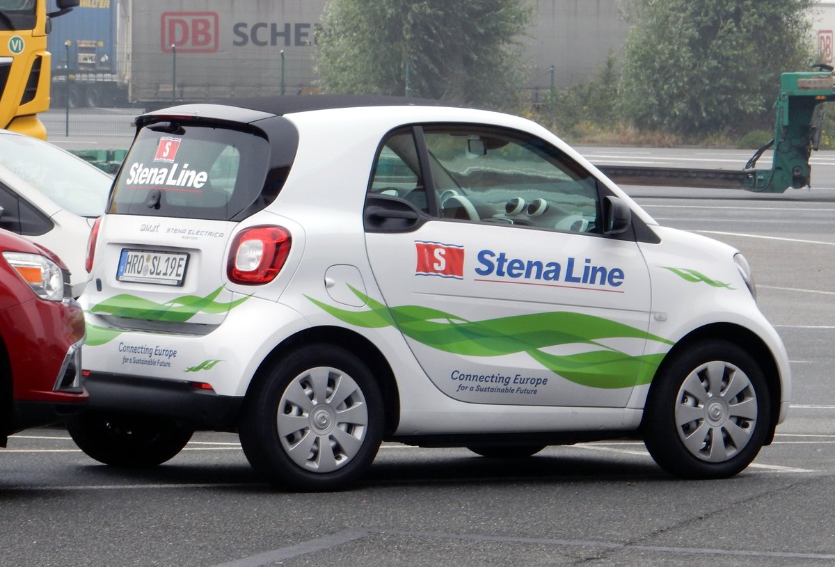 Smart FT der Stena Line am 05.11.18 im Hafen Rostock. Große Schiffe, kleine Autos.